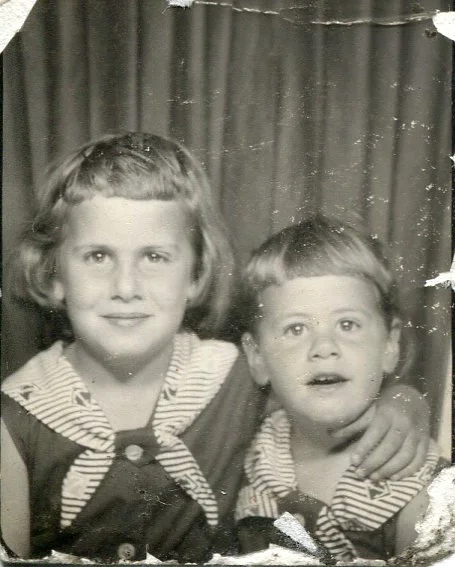 I came across this simple 2-inch picture of me + one of my sisters [I’m on the right], taken in a coin-operated photo booth. Later I learned that my father carried it in his wallet for more than 30 years.